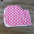 Protège-épaule tissu de coton rose à motifs circulaires, doublé d'éponge de coton blanche.