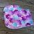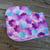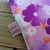 Protège-épaule en tissu coton à fleurs turquoise et violet doublé d'éponge blanche très douce en coton et bambou.