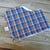 Protège-épaule tissu de coton quadrillé bleu et blanc, doublé d'éponge de coton blanche.