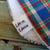Protège-épaule tissu vintage écossais bleu doublé d'éponge blanche très douce en coton et bambou.