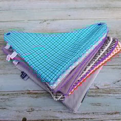 Bavoir bandana bleu quadrillé et doublé de tissu éponge vert