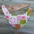 bavoir bandana en coton imprimé façon patchwork rouge, vert et rose