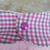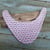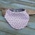 Bavoir bandana en coton quadrillé rose et gris et doublé d'éponge rose pâle.