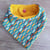 Bavoir bandana en coton façon tissage jaune, rouge, vert, gris et doublé d'éponge jaune