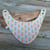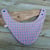 Bavoir bandana écossais rose et marron et doublé de tissu éponge beige