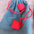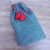 Un grand sac à coulisse en toile bleu vert contenant 8 paires de petits coussins,