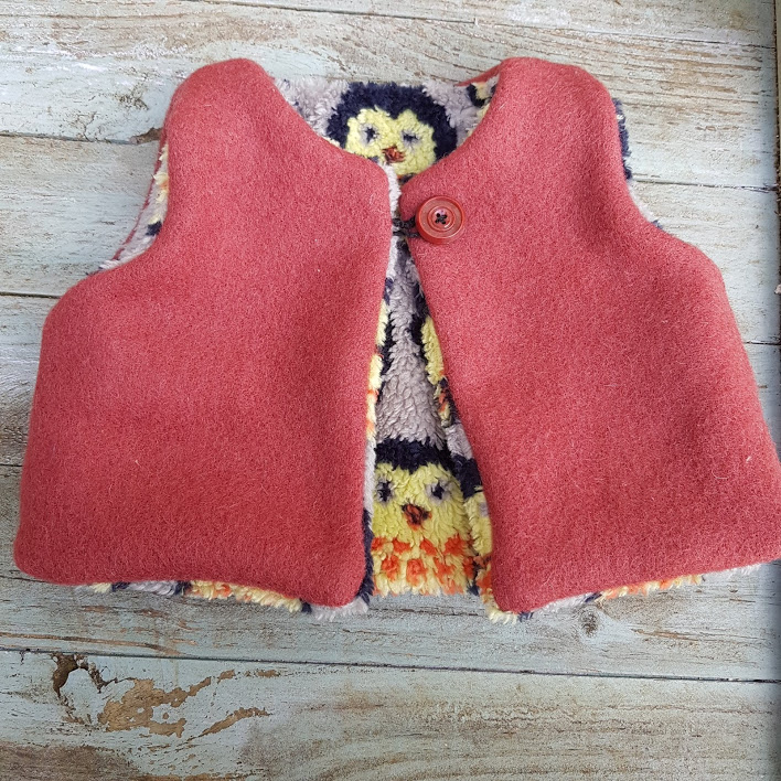 Ce gilet bien confortable réchauffera une tenue de bébé, dehors comme dedans.
