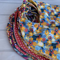 Serviette à élastique en coton fleuri jaune, turquoise, orange blanc...