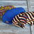 Coussin éléphant en coton imprimé marron jaune et bleu