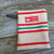 Manique en lin ancien et coton nid d'abeille écru avec un ruban à carreaux bordeaux et écru.