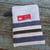 Manique en lin ancien et coton nid d'abeilles écrus avec 2 rubans marine rayé écru
