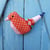 Petit oiseau à suspendre cousus dans des tissus à motifs dans les tons rouge, rose...
