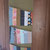 Vide poche ou range courrier cousu en bandes de patchwork multicolores.