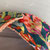 Bavoir papillon en coton vert imprimé de fleurs roses, rouges, vertes .