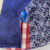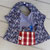Le centre du bavoir est en tissu vichy bleu et blanc, la poche est en tissu bleu.