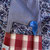 La poche (dans laquelle se trouve une débarbouillette et une cuillère bleue) est en coton bleu marine imprimé blanc.