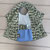 Bavoir papillon imprimé vert, blanc, bleu.
