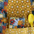 Le milieu du bavoir est en coton jaune imprimé, la poche est jaune à pois blancs.