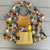 Ce bavoir est doublé de tissu éponge ocre jaune.