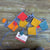 Guirlande porte-photos de mini-fanions en tissus multicolores de coton uni et à pois.
